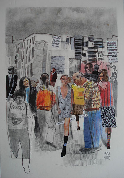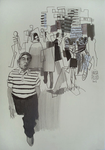 Multitudes, collage lápiz color y grafito sobre papel, 25 x 15 cm 2008
