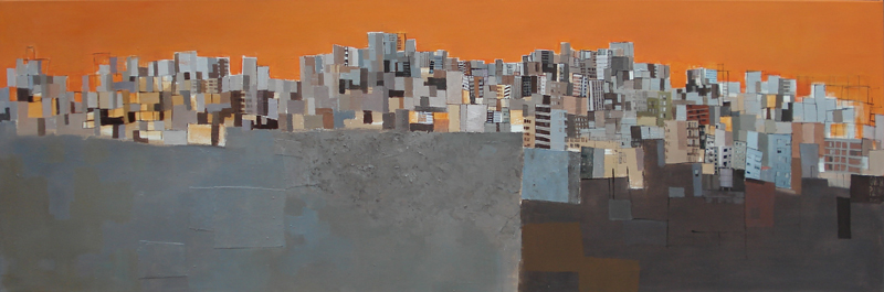 Sunset, oil and collage on canvas, 50 x 150 cm, 2008
