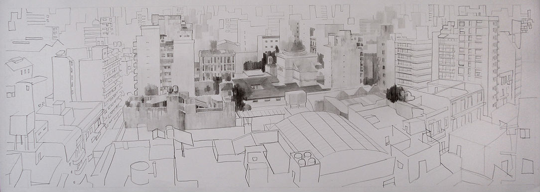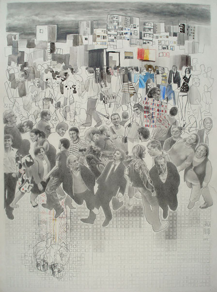 Paisaje con tr·nsito, lapiz sobre papel, 70 x 50cm, 2009