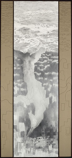 Danza fúnebre (Mahler Sinfonía 9), 245 cm x 130 cm, lápiz grafito sobre papel y tinta sobre tela, 2015