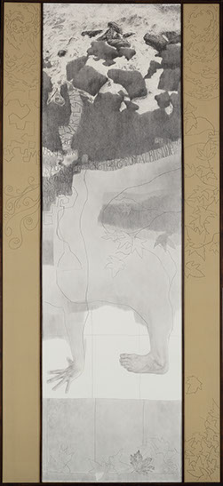 Diana en el bosque, 245 cm x 130 cm, lápiz grafito sobre papel y tinta sobre tela, 2015