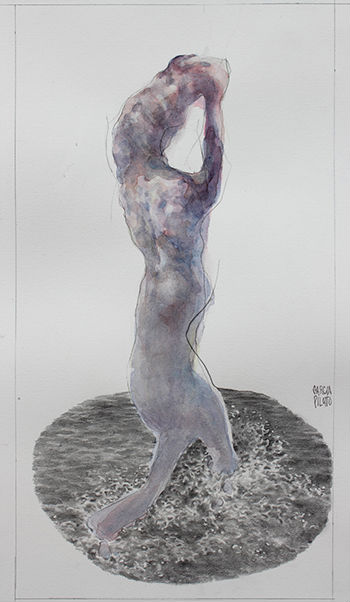Dos figuras en el agua, lápiz grafito y acuarela sobre papel, 32 cm x 18 cm, 2013