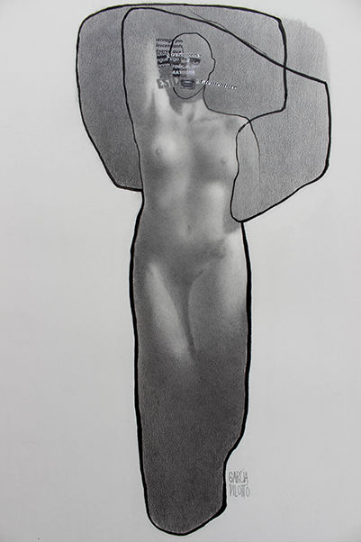 Lápiz grafito, tinta y collage sobre papel, 35 cm x 24 cm, 2014