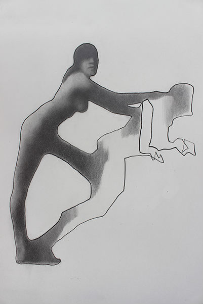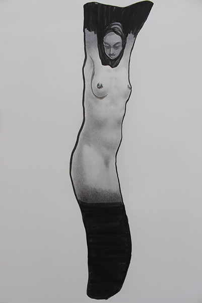 Almost a centaur, 245 cm x 130 cm, graphite pencil on paper and ink on canvas, 2015